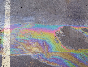 Ocurre cuando los rayos de luz atraviesan una capa de aceite derramado sobre el agua y luego la capa de agua misma, debido a que ambos líquidos no se mezclan.